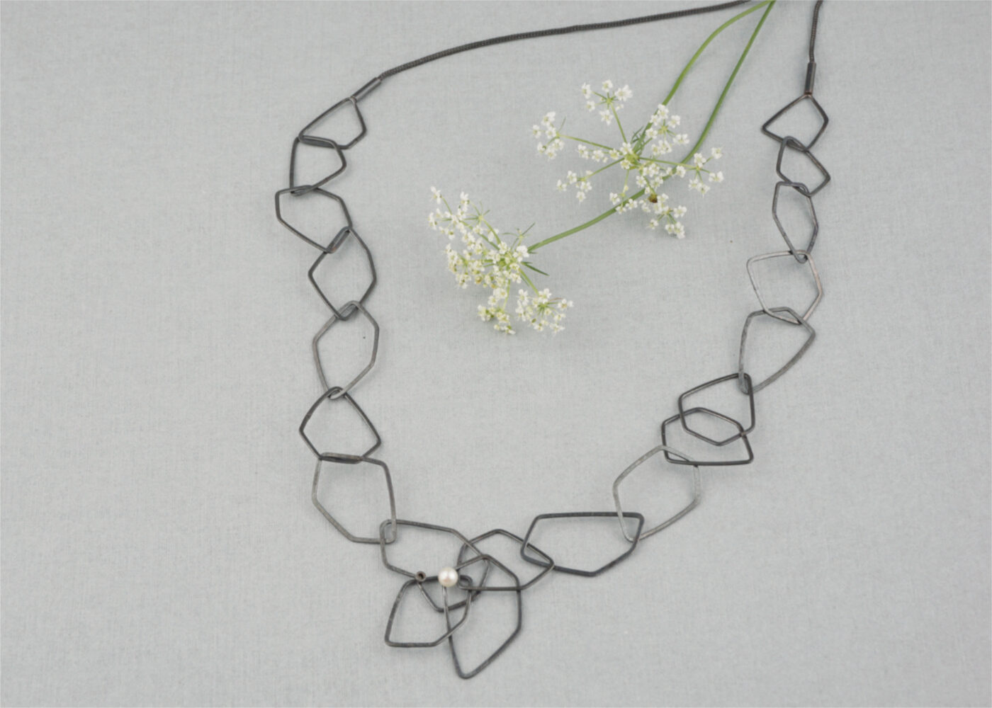 Halsschmuck aus geschwärztem Silber, türkisem Emaille, Kascholong